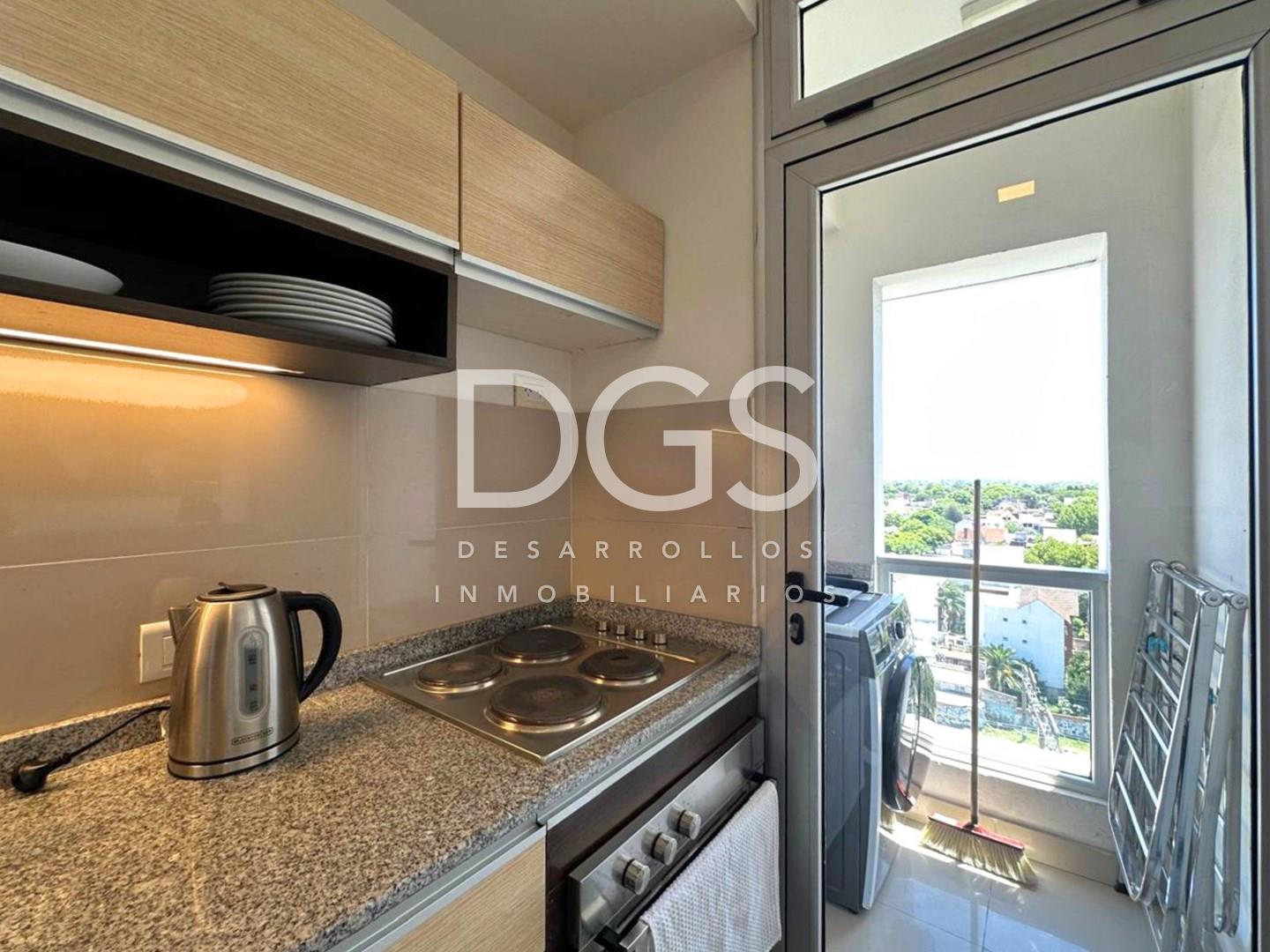 Alquiler de departamento 2 ambientes con cochera en Banfield Al ingreso nos encontramos con living comedor integrado con excelente luminosidad y ventilación por amplia abertura de aluminio con vista al frente; cocina totalmente equipada con mueble bajo mesada y alacena, horno y anafe eléctrico, pasa platos que obra de barra desayunadora, salida a lavadero semi cubierto con conexión para lavarropas y pequeña mesada; baño completo con bañera con mampara y abertura para ventilación; por último, dormitorio completo con placard empotrado, amplio y luminoso, con gran abertura con vista al frente; La unidad cuenta con A/A en living comedor y dormitorio, cortinas blackout tipo roller. Cochera semi cubierta en planta baja, con acceso por portón. Disponible a partir de Febrero; consulta por requisitos para ingreso.