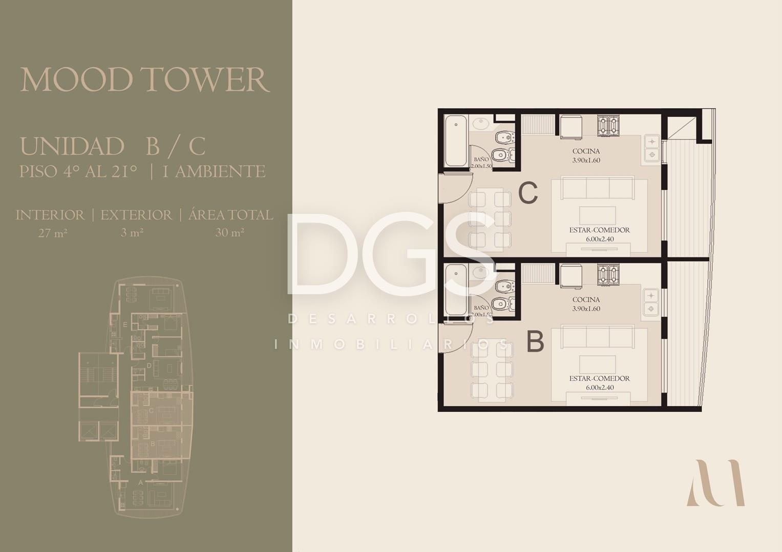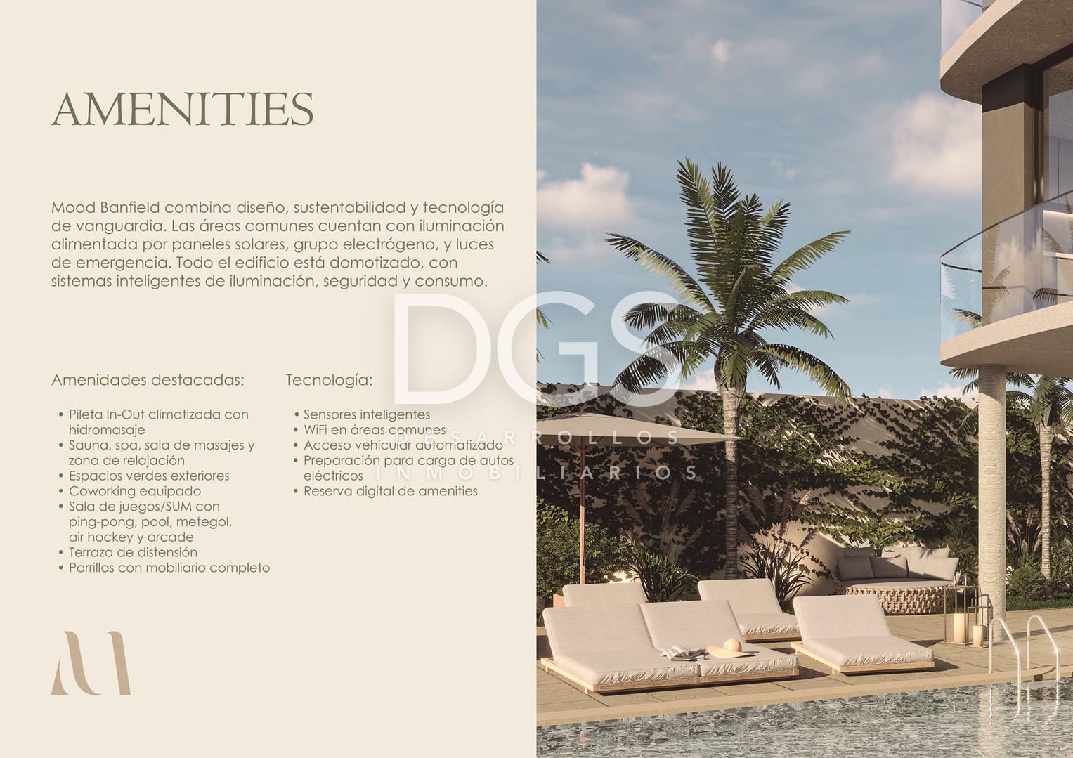 Venta de desarollo en pozo, edificio MOOD TOWER en Banfield Mood Tower interpreta el estilo urbano con una silueta fluida y espacios diseñados para el bienestar. Concebido bajo una mirada contemporánea, donde la forma y la función se integran con naturalidad. Este proyecto se distingue por su situleta envolvente y por interiores que transmiten serenidad y carácter. Pensado para quienes valoran el diseño como parte esencial de su modo de vivir. Combina diseño, sustentabilidad y tecnología de vanguardia. Las áreas comunes cuentan con iluminación por paneles solares, grupo electrógeno, parasensores y luces de emergencia. Todo el edificio está domotizado, con sistemas inteligentes de iluminación, seguridad y consumo. Amenities destacadas: -Pileta in-out climatizada con hidromasaje. -Sauna, spa, sala de masajes y zona de relajación. -Espacios verdes exteriores. -Co-working equipado. -Sala de juegos/SUM con ping-pong, pool, metegol, air hockey y arcade. -Terraza de distensión. -Parrillas con mobiliario completo. Tecnología: -Sensores inteligentes. -Wifi en áreas comunes. -Acceso, vehicular automatizado. -Preparación para carga de autos eléctricos. -Reserva digital de amenities. Tipología: -Monoambiente de 30 M2 totales; 27 M2 cubiertos y 3 M2 semicubiertos. LOS VALORES EXPRESADOS SON DE CONTADO EFECTIVO; CONSULTE POR FINANCIACIÓN: ANTICIPO DEL 30% MÁS 48 CUOTAS FIJAS EN DOLARES. Fecha de ENTREGA ESTIMADA para el 2030. Libre de gastos para la parte VENDEDORA. Contáctanos para mas información y responder cualquier duda que tengas. Si necesitas vender para comprar te asesoramos de la mejor manera para que cumplas tu objetivo! Seguinos en nuestras redes y forma parte de la familia DGS!