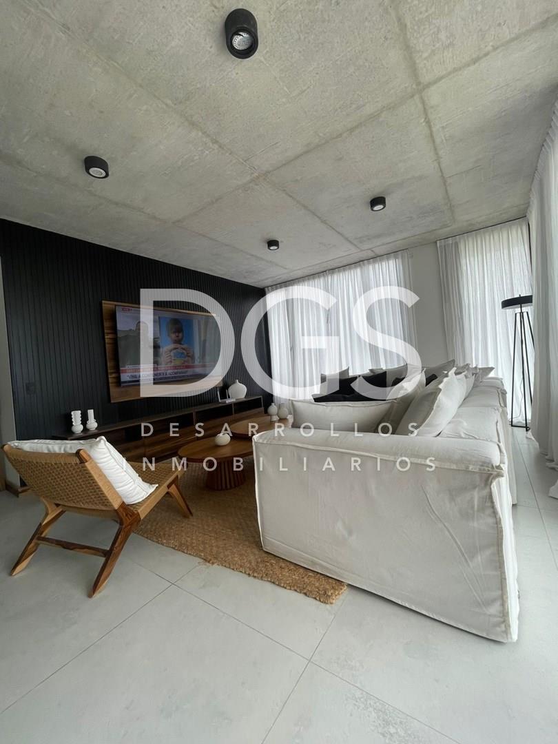 | LUXURY PARC | PINAMAR .- CARACTERISTICAS DE LOS DEPARTAMENTOS Piso de porcelanato de placas 1.00 x 1.00m. rectificadas. Techo hormigón visto. Aberturas de PVC Rehau color Negro de alta tecnología. Vidrios DVH con doble vidrio de seguridad. Amoblamientos de cocina en melamina negra de marca Jhonson o similar con los interiores en tandembox metálicos, con herrajes de primera marca y alacena de la misma forma y marca. Mesada con alzada en silestone símil mármol. Bacha en acero negro y grifería de alta prestación monocomando. Horno de empotrar eléctrico y anafe de empotrar vitrocerámico marca Ariston o similar línea y marca. Caldera/termotanque eléctrico de uso individual p/agua caliente. La calefacción será a través de radiadores eléctricos de acción a distancia domotizados Aire acondicionado frío / calor en cada local. En dormitorios tendrán las mismas características que el resto de los ambientes con el agregado de los frentes de placard e interiores totalmente equipados. Los baños tendrán los revestimientos en porcelanato piso y pared de placas símil mármol de medidas amplias. La losa, inodoro y bidet serán Ferrum Línea Marina con depósito de alta gama. La grifería será FV de cierre cerámico de alta gama. El sector de ducha se hará en forma de receptáculo con el mismo cerámico que el resto del Baño. Se colocará una mampara de vidrio Mesada símil madera o símil mármol según se considere con la decoración pero siempre manteniendo un mismo criterio de decoración. En los balcones, los pisos será de porcelanato, símil madera. La baranda será de acero o aluminio con superficie de vidrio tipo blisan de seguridad. Fogón para parrilla. La cochera (OPCIONAL) se encontrará en el subsuelo. AMENITIES Y ESPACIOS COMUNES: Cocheras individuales cerradas con cortinas totalmente seguras para dejar durante el invierno todos los vehiculos de uso de playa, de metrajes aprox. de 30m² Contará también con un lava-cuatriciclos / utv. Laundry de uso común. Cocheras simples cubiertas de 15m² En Planta Baja se cuenta con una Piscina in-out calefacionada, con Solarium y Jardín. Vestuario y baños para la piscina. Coworking en el back de la Recepción. Entrada de servicio para el delivery y estacionamiento de cortesía. En el Entrepiso cuenta con GYM, Sala de juegos y dos Terrazas con parrilla de uso común. En la Terraza se planteó un SUM con Terraza de uso común para reuniones, teniendo de esta forma tres puntos de uso para reuniones sociales. En este último 7º Piso también tenemos las Terrazas individuales de los dos Penthouse de uso exclusivo con terrazas, jacuzzi, fogones, huertas orgánicas, quincho y cava de vinos. (Honorarios del 4% a cargo del comprador. Libre de gastos de escritura para el vendedor)